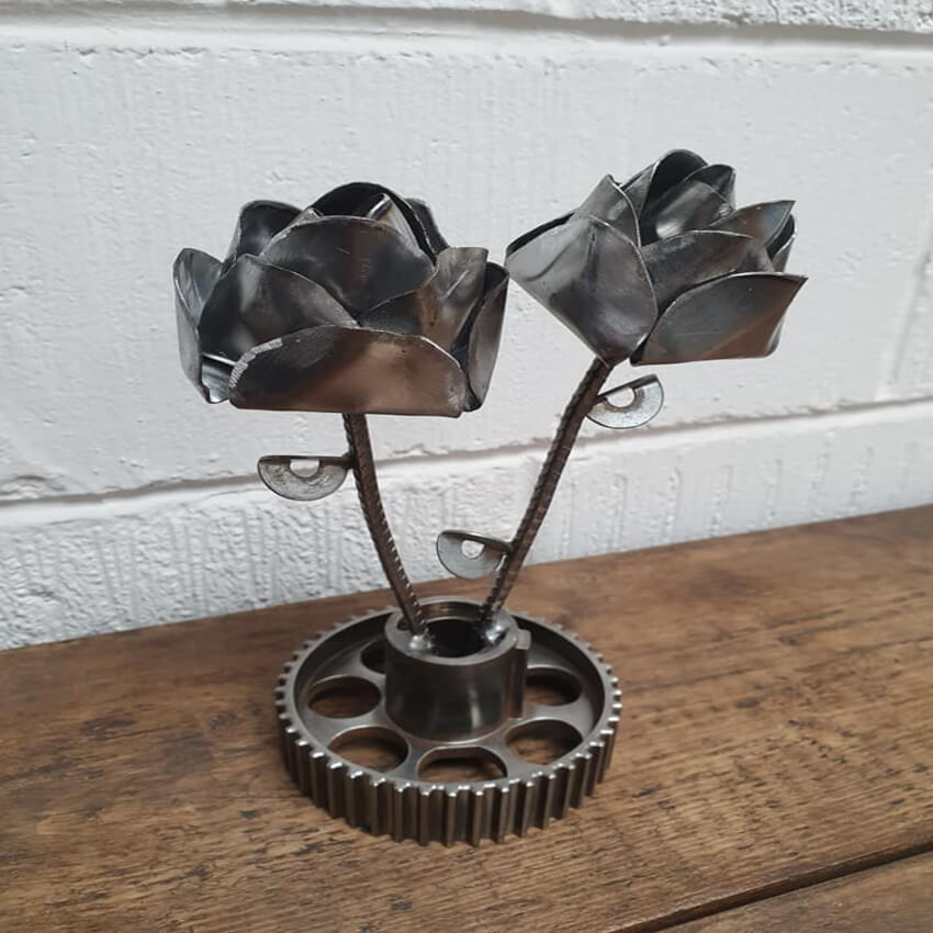These beautiful roses were originally a valentines day build. The first batch was made using the remains of an old green house frame. The frame had been painted in a dark green colour that made a right mess of the workshop after stripping it off with a polycarbonate disc on the grinder. You could say I looked like a large green smurf afterwards.